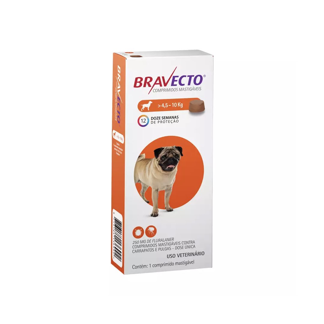 ANTIPULGAS E CARRAPATOS PARA CÃES MSD BRAVECTO 250MG - 4,5 A 10KG
