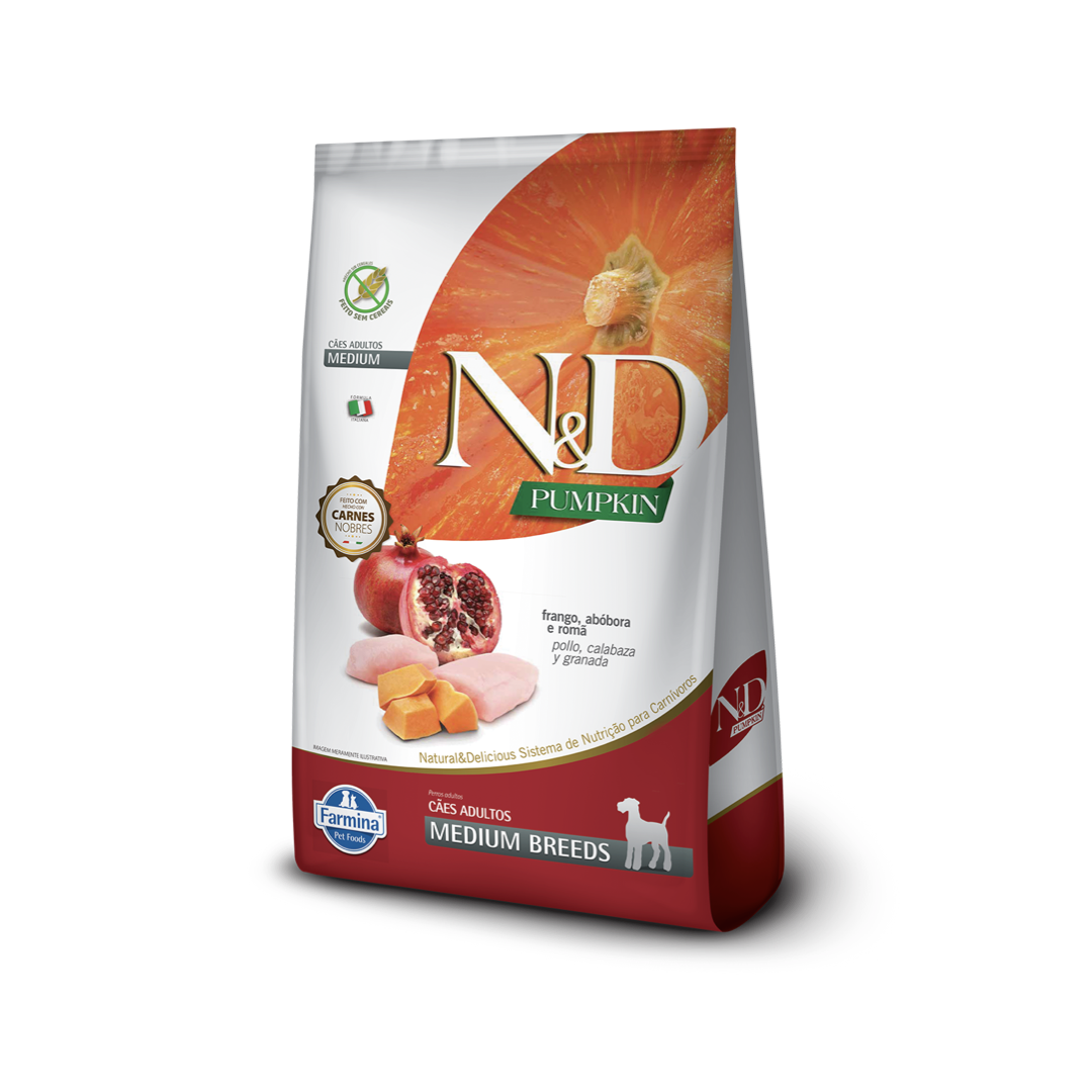 RAÇÃO FARMINA PARA CÃES ADULTOS ND CARNE FRESCA PUMPKIN FRANGO MEDIUM 2,5KG