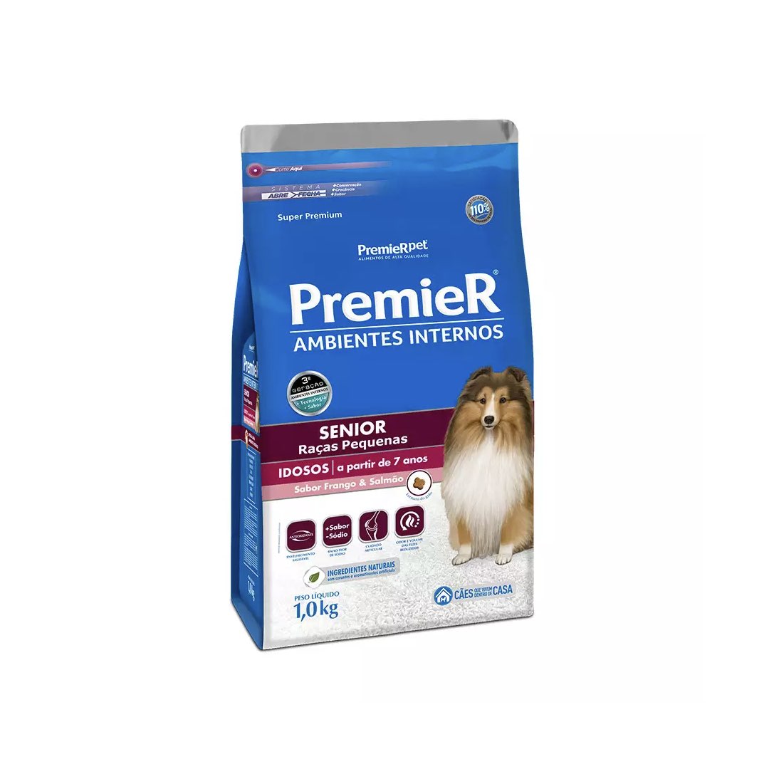 <p>PremieR Ambientes Internos Senior é um alimento Super Premium específico para cães idosos que vivem dentro de casa | Este alimento oferece ao seu cão mais saúde e longevidade pois foi formulado para minimizar ou prevenir as consequências decorrentes do avançar da idade. Completo e balanceado, oferece cuidados especiais aliados a um sabor excepcional que agrada aos paladares mais exigentes | Oferece ainda um grão especialmente formatado para facilitar a mastigação pelos cães idosos | A combinação de ingredientes de alto aproveitamento com fibras especiais e o extrato de yucca reduz o odor e volume das fezes minimizando assim possíveis inconvenientes de uma convivência tão próxima.</p>
