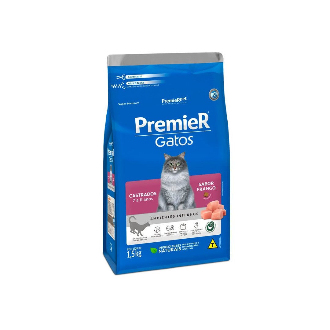 RAÇÃO PREMIER GATOS CASTRADOS 7 A 11 ANOS Tamanho:1,5KG