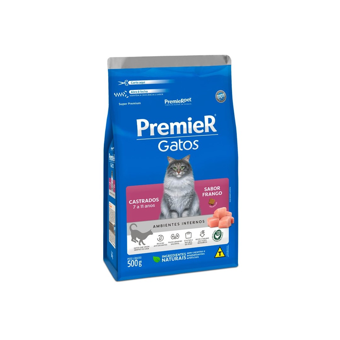 RAÇÃO PREMIER GATOS CASTRADOS 7 A 11 ANOS Tamanho:500G