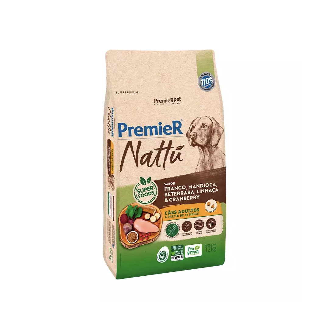 RAÇÃO PREMIER NATTU CÃES ADULTOS SABOR MANDIOCA 12KG