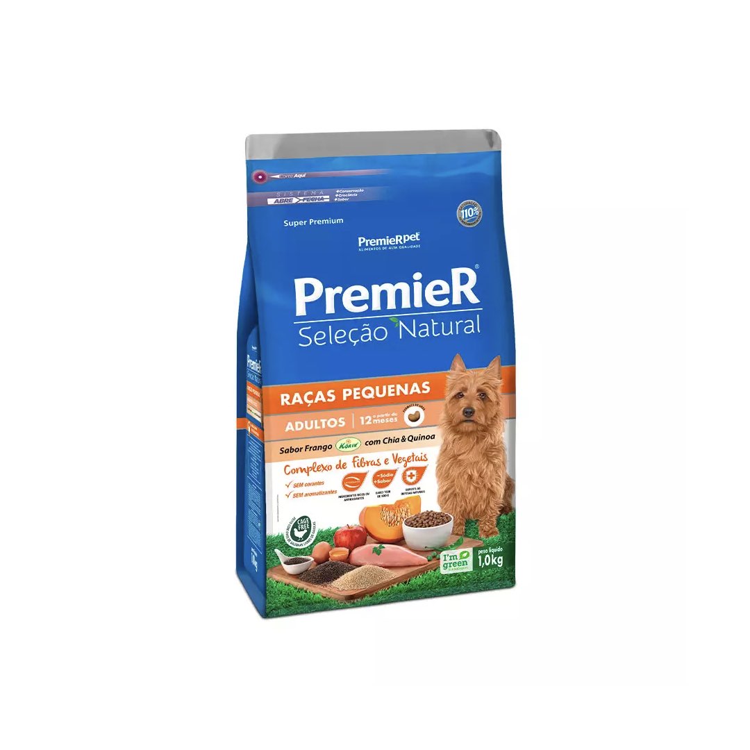RAÇÃO PREMIER SELEÇÃO NATURAL CÃES ADULTOS RAÇAS PEQUENAS FRANGO KORIN, CHIA & QUINOA